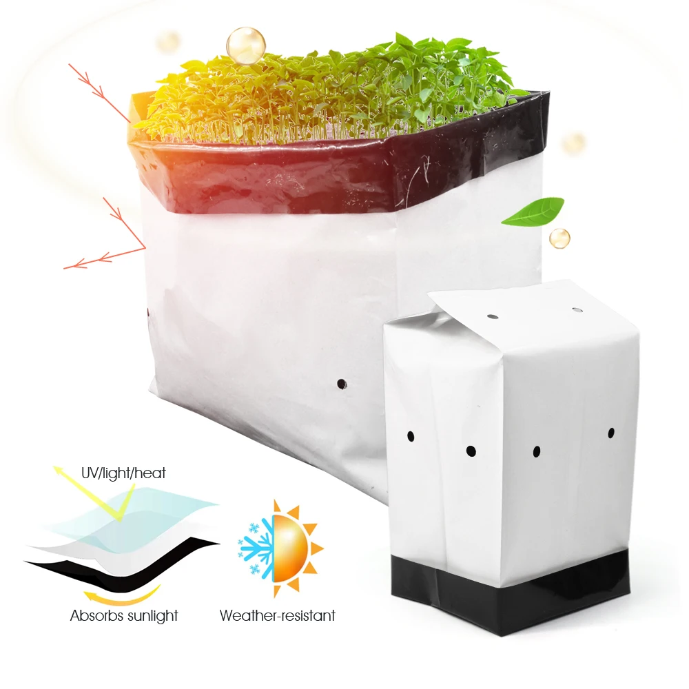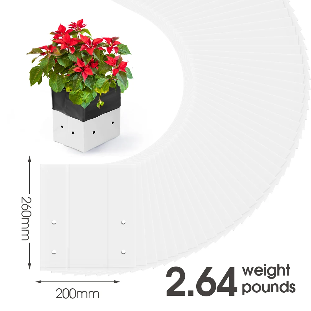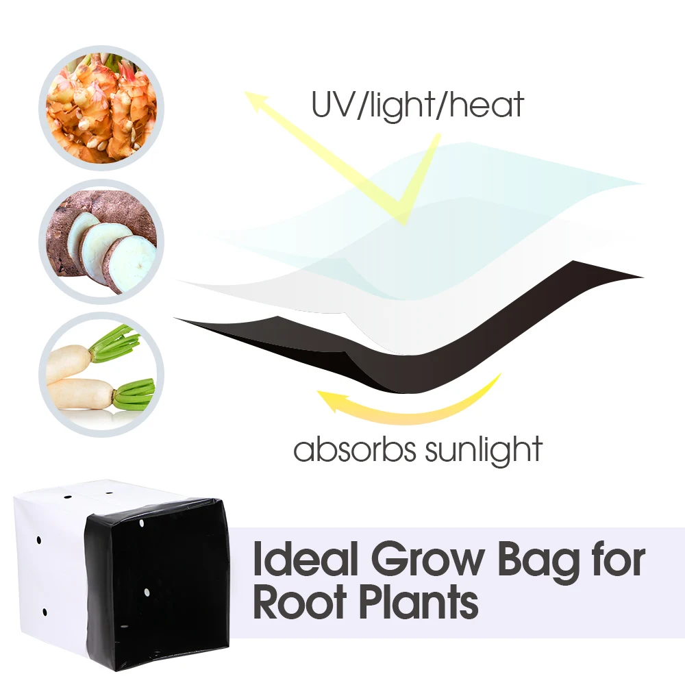 Description Features: – Reusable and Sturdy: This grow bag is made of strong and durable plastic so it can be reused for a long time; It doesn’t fall apart when you move it from place to place and even works well in harsh weather conditions – Designed to Protect Plants: The black inner surface absorbs sunlight while the white outer surface reflects sunlight—this keeps roots in relatively cool even when the weather is scorchingly hot and relatively warm in harsh winters – Stability & Lightweight: This Black-and-White Grow Bags have notches on its sides to keep it upright and stable when filled; It is portable, lightweight, foldable, and very easy to store;We offer multiple sizes – Great Fit for Many Needs: Ideal for growing root vegetables like carrots, potatoes, radishes, taro, and others in small gardens; Also looks great on patios, balconies, sunrooms, and outdoor spaces; Perfect for starting seedlings and transporting or transferring plants Specifications: – Color: Black and White – Quantity: 20/30/50/100PCS – 100% new and good quality Package List: Please check SKU marked Caution: Please allow 1-3cm differs due to manual measurement. Due to the different display and different light, the picture may not reflect the actual color of the item. Thanks for your understanding.