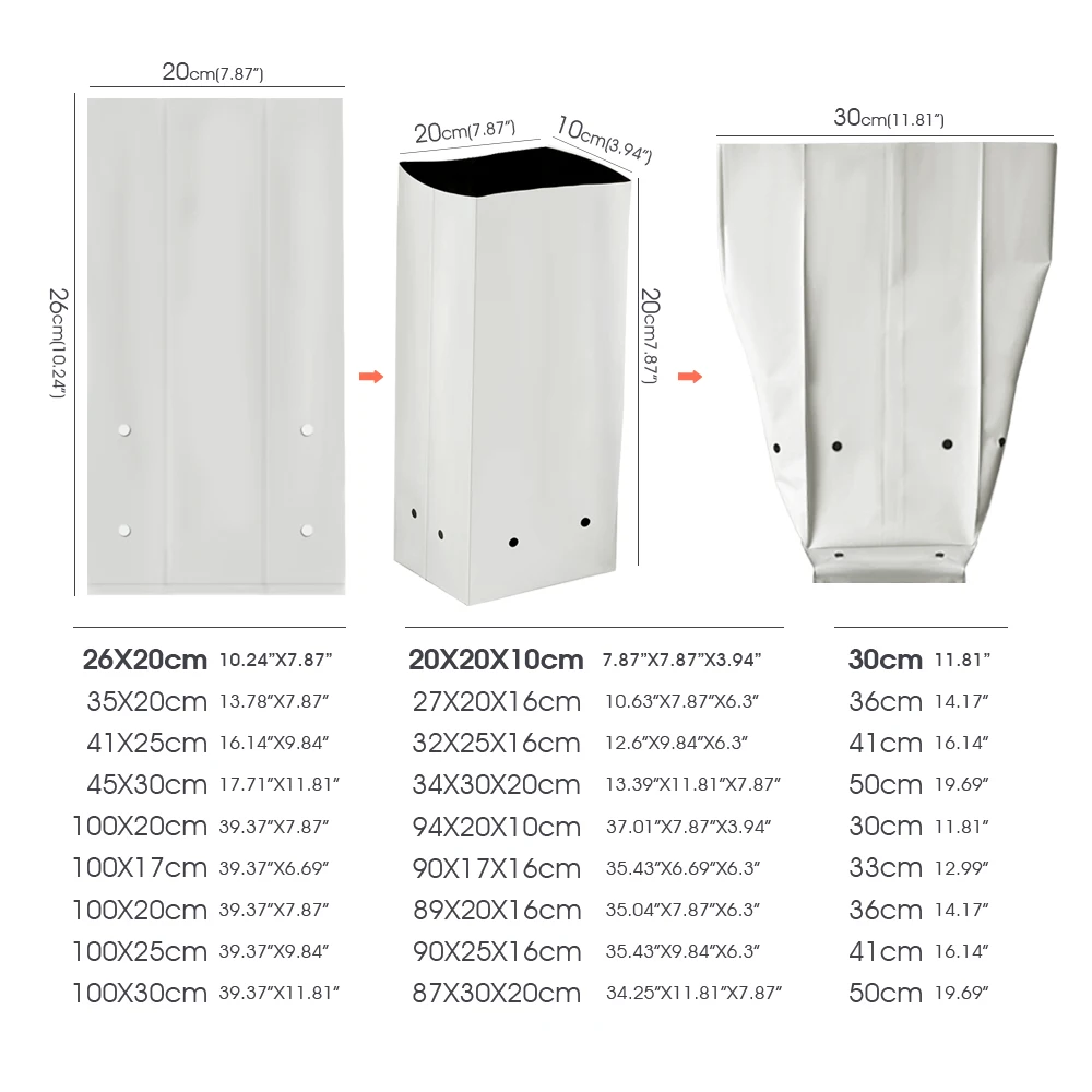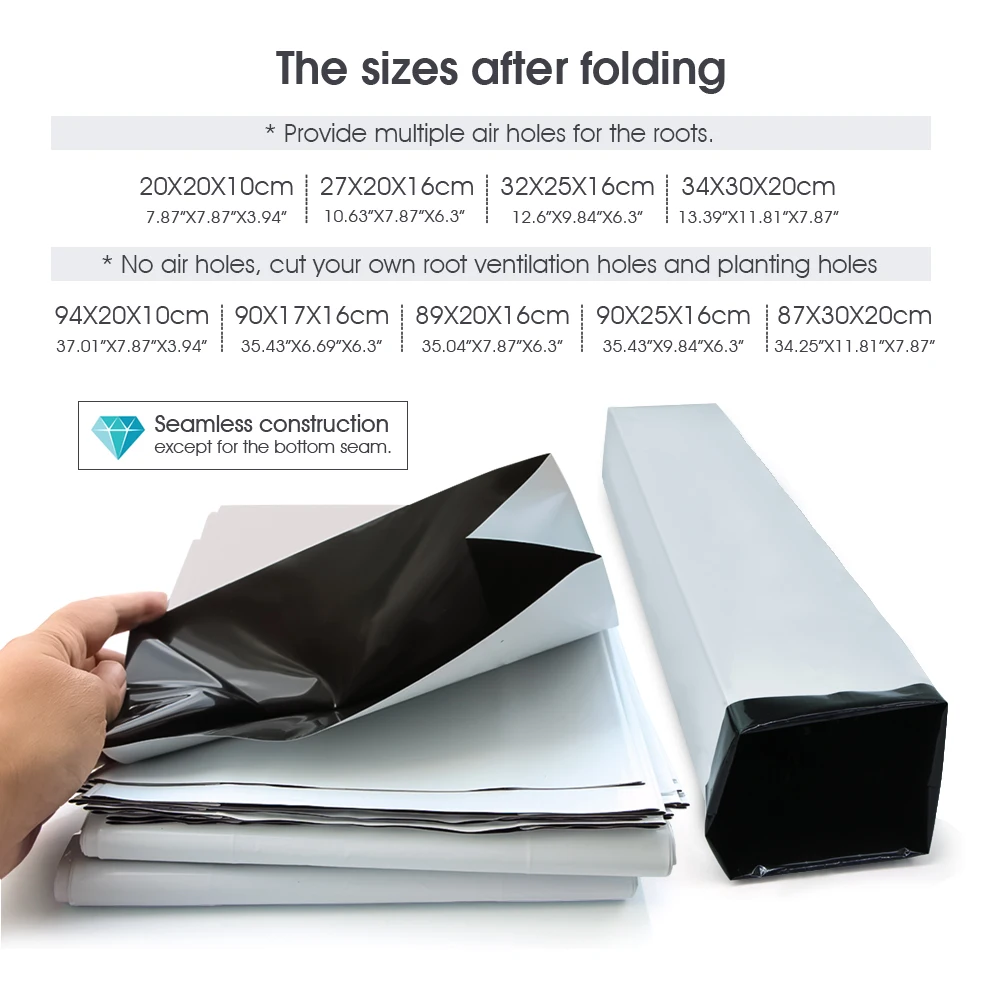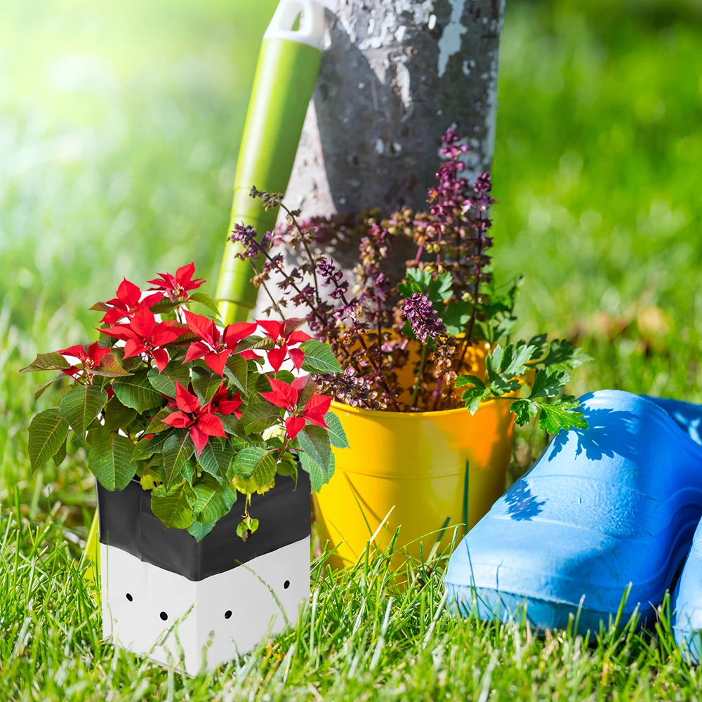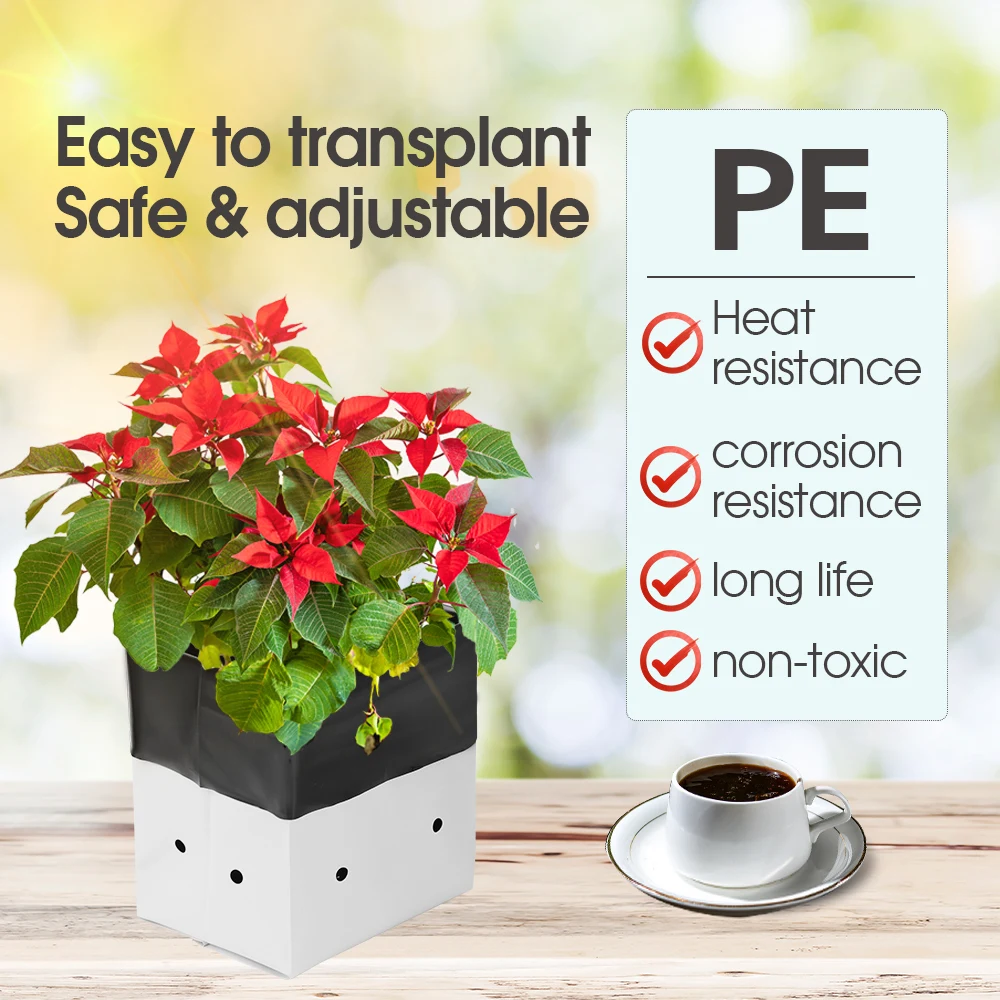 Description Features: – Reusable and Sturdy: This grow bag is made of strong and durable plastic so it can be reused for a long time; It doesn’t fall apart when you move it from place to place and even works well in harsh weather conditions – Designed to Protect Plants: The black inner surface absorbs sunlight while the white outer surface reflects sunlight—this keeps roots in relatively cool even when the weather is scorchingly hot and relatively warm in harsh winters – Stability & Lightweight: This Black-and-White Grow Bags have notches on its sides to keep it upright and stable when filled; It is portable, lightweight, foldable, and very easy to store;We offer multiple sizes – Great Fit for Many Needs: Ideal for growing root vegetables like carrots, potatoes, radishes, taro, and others in small gardens; Also looks great on patios, balconies, sunrooms, and outdoor spaces; Perfect for starting seedlings and transporting or transferring plants Specifications: – Color: Black and White – Quantity: 20/30/50/100PCS – 100% new and good quality Package List: Please check SKU marked Caution: Please allow 1-3cm differs due to manual measurement. Due to the different display and different light, the picture may not reflect the actual color of the item. Thanks for your understanding.