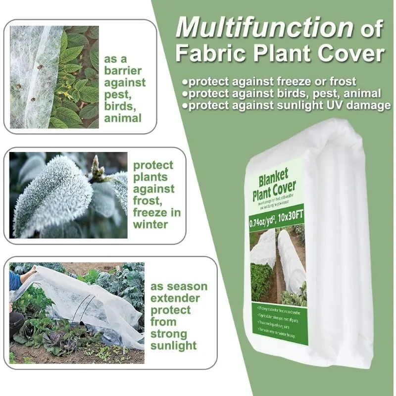 Winter Vegetables Protective Blanket Plant Anti-freeze Cover Non-Woven Fabric Prevent Frostbite Garden Seedling Potted Cloth 【DIY Rectangular Plant Cover】providing ample coverage for large areas. It can be easily cut with scissors to fit over conventional-width rows or used for wide-row plantings. When not in use, it should be folded and stored away from sun and moisture. Protect your plants from freeze, frost, strong sun, insects, and birds during spring, summer, late autumn and cold winter with our versatile plant cover. 【All-Purpose Floating Row Cover】floating row cover is made from lightweight, breathable, and durable 0.95 oz/sq non-woven polypropylene fabric, perfect for plant covers freeze protection. You can cut it into different sizes for various uses. It keeps heat in, bugs out, and acts as an excellent windbreak for young transplants. The cover allows rain and overhead irrigation to reach plants and soil, making it an all-purpose option for your garden. 【Best Freeze Cloth for Outdoor Plants】extra-stable plant blanket retains warmth while protecting against harsh weather, birds, animals, and insects. Made with 0.95oz thick fabric, it is perfect for extending the growing season into early spring and late fall, and for insulating strawberries, herbs, perennials, small fruits, and other tender landscape plants all winter long. Our frost cloth is one of the best frost blankets for outdoor plants. 【Strong & Durable Reusing Plant Covers】plant cover is made from high-quality materials and is strong and durable, making it ideal for use in heavy and dusty snow areas. It’s easy to install and cover your plants without wasting your time. Our frost cloth for outdoor plants is lightweight enough to allow air, water, and moisture to reach your plants without harming their growth process. It’s also reusable and will provide reliable protection season after season. 【Winterize Your Garden Easily & Safely】We stand behind the quality of our plant cover and offer a satisfaction guarantee. If you’re not completely satisfied with your purchase, please contact us, and we will refund or replace your product immediately. We’re committed to providing outstanding customer service support to assist you with your garden winterization needs. Protect your plants with absolute ZERO risk with our plant covers for winter.