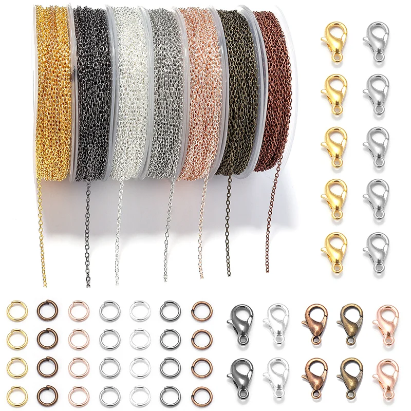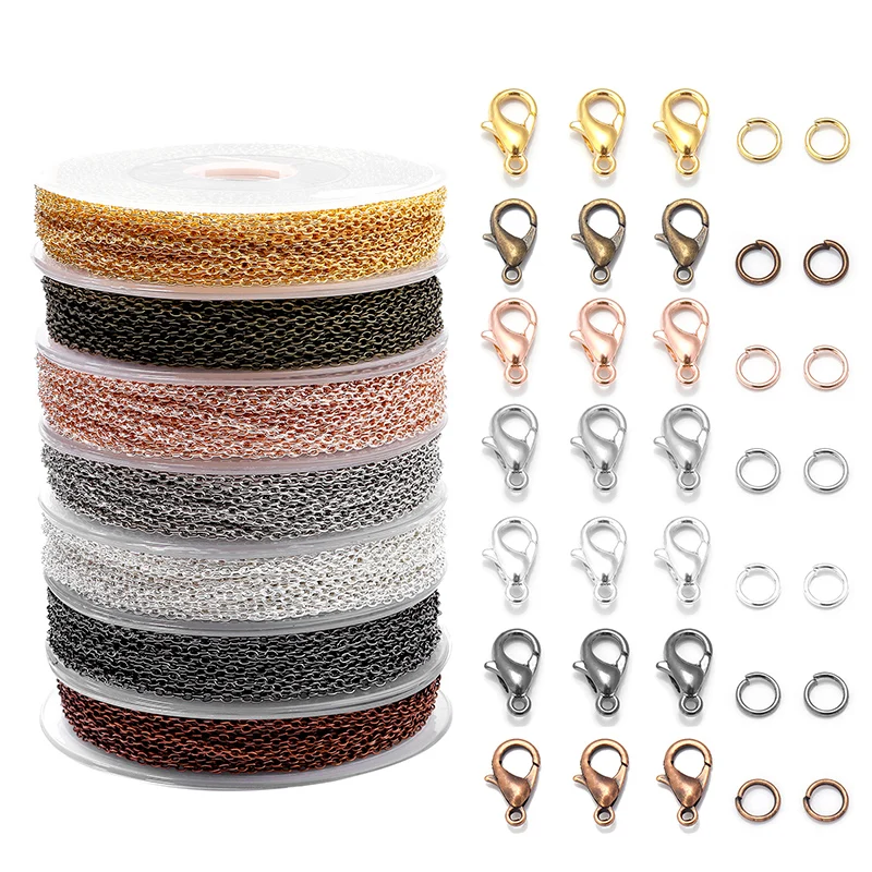 1Set Iron Chain 3x2mm Oval Cross Chain With Lobster Clasps And Jumping Ring For DIY Necklace Bracelet Jewelry Making AccessoriesMaterial: Metal Color: As shown Chain Size: 2x3mm Lobster clasps size: 12x6mm Quantity: 1Set 3M Chain,10pcs Lobster clasps,30pcs Jump ring