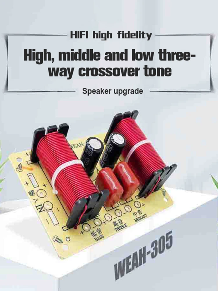 The United States customers attention: When you select “Ship From United States”, the following addresses will not provide delivery service: Hawaii, Alaska, Puerto Rico, Guam, APO, DPO, FPO, etc. Recommend you to choose “Ship From China”.Thank youï¼ï¼ï¼ Clientes de España atención: Cuando selecciona “Enviar desde España”, el servicio de entrega no está disponible en los siguientes códigos postales: 35000-35999 38000-38999 Se recomienda que elija “Enviar desde China”. ¡Gracias! ! !WEAH-305 3 Way Audio Speaker Crossover Circuit Treble Midrange Bass Module Frequency Divider Home Loudspeaker Filter Refit Accessory Feature: Hollow core inductor with high heat dissipation Special capacitor for imported audio CBB sound capacitor Suitable for 4-11 inch speakers below 150W Adopt over current protection device, durable, long service life. High temperature resistant inductor. 41mm frame inductor is adopted and fixed with cable ties to prevent co-vibration of music;