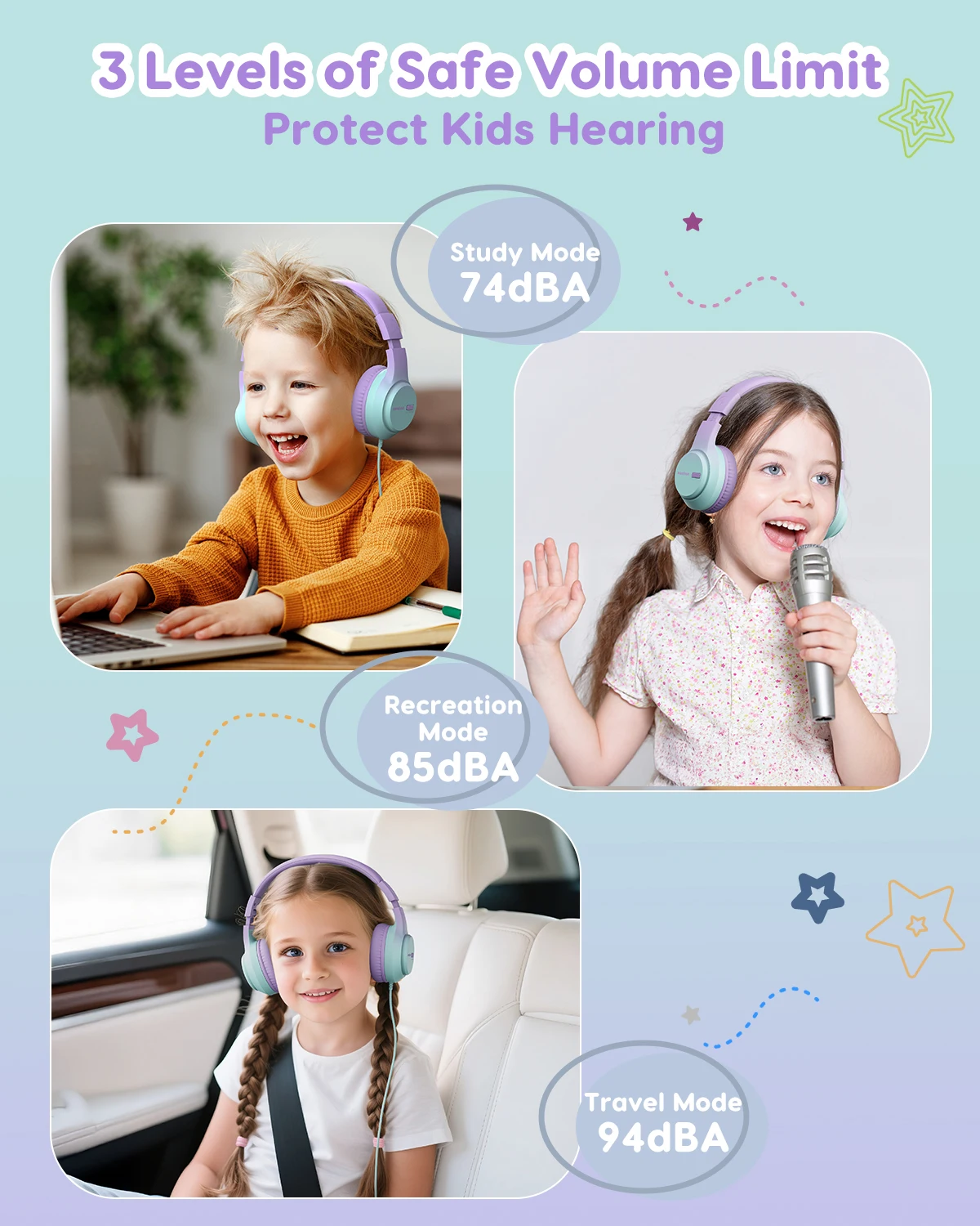�� Volume-Limiting Safety: Features 74/85/94dB adjustable volume caps tested by independent labs, protecting young ears from noise-induced damage. Perfect for school, travel, or daily use! �� Comfort All Day: Soft memory-protein ear cushions & lightweight frame (180g / 6.3oz) offer a snug, pain-free fit for tiny ears during long study sessions or flights. �� Universal Compatibility: 3.5mm jack seamlessly connects to tablets, Kindle, YOTO Player, airplanes, and all classroom devices—no Bluetooth pairing needed! ✈️ Travel-Ready Durability: Reinforced headband hinge & tangle-resistant cord survive backpacks, playgrounds, and turbulence. Built tough for kids’ adventures! �� Kid-Safe Materials: Hypoallergenic, BPA-free ear cushions and food-grade plastic ensure safe, non-toxic contact with sensitive skin during extended wear. �� Over-Ear & Noise Blocking: Over-ear design reduces ambient noise by 15dB—ideal for homework focus in noisy homes or peaceful flights!