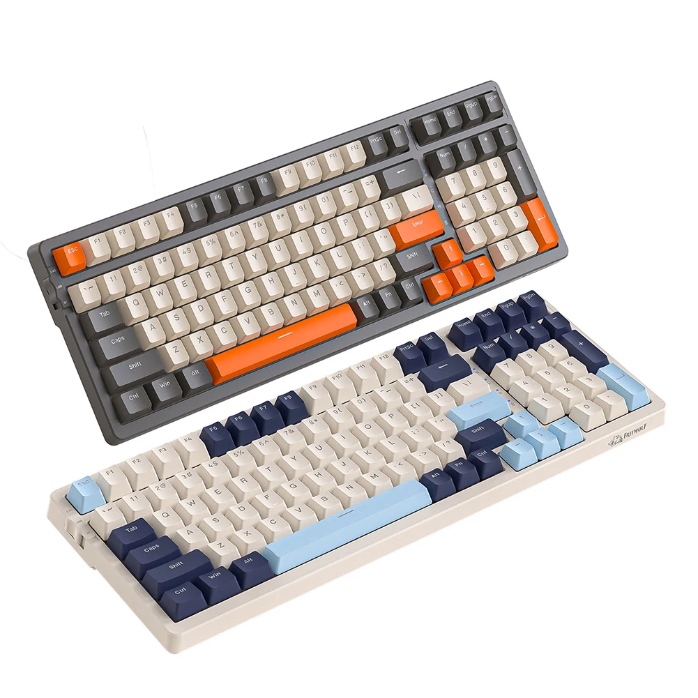 Specification: Origin: Mainland China Type: Bluetooth-Compatible Wireless Application: Desktop,Laptop,Tablet Keyboard Standard: 100 Keys Language: English Operation Style: Mechanical Interface Type: Bluetooth-Compatible/USB Style: Gaming,Ergonomics,For Laptop,Multifunctional Keyboard Package: Yes Backlight Type: MULTICOLOR Switches Hot swap: YES Name: Bluetooth-Compatible+2.4G+wired three-mode mechanical keyboard Color: gray and white, blue and white (optional) Shaft body: green shaft, red shaft (optional) Transmission method: Wired Type-C+5.0 Bluetooth-Compatible+2.4G wireless Number of keys: 100 keys Shaft: Quanjian hot-swappable Interface: Type-C interface Battery capacity: 3000mAh Working current: ≤200mA Working voltage: 5W±2.5W Lighting mode: 18 lighting effects Keyboard size: 36*14*4CM/14.17×5.51×1.57inch Box size: 41.4*15*4.8CM Product weight: 720G Product size: 360.00×140.00×40.00mm Product size: 14.17×5.51×1.57inch
