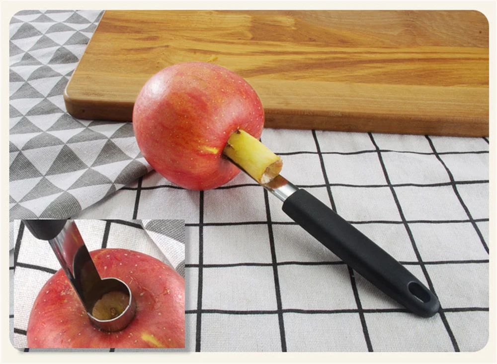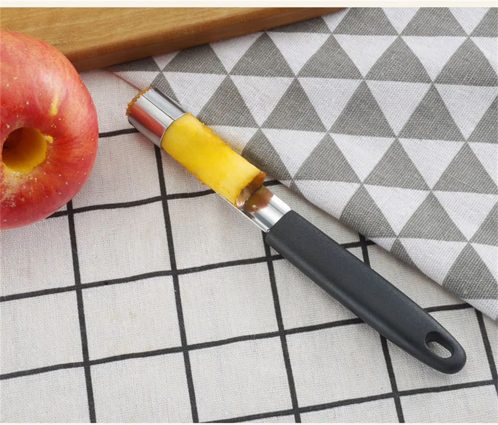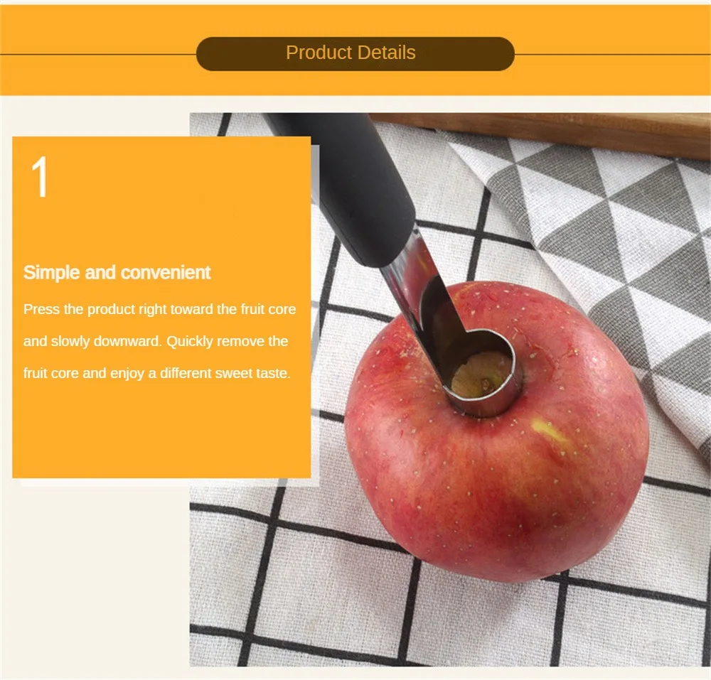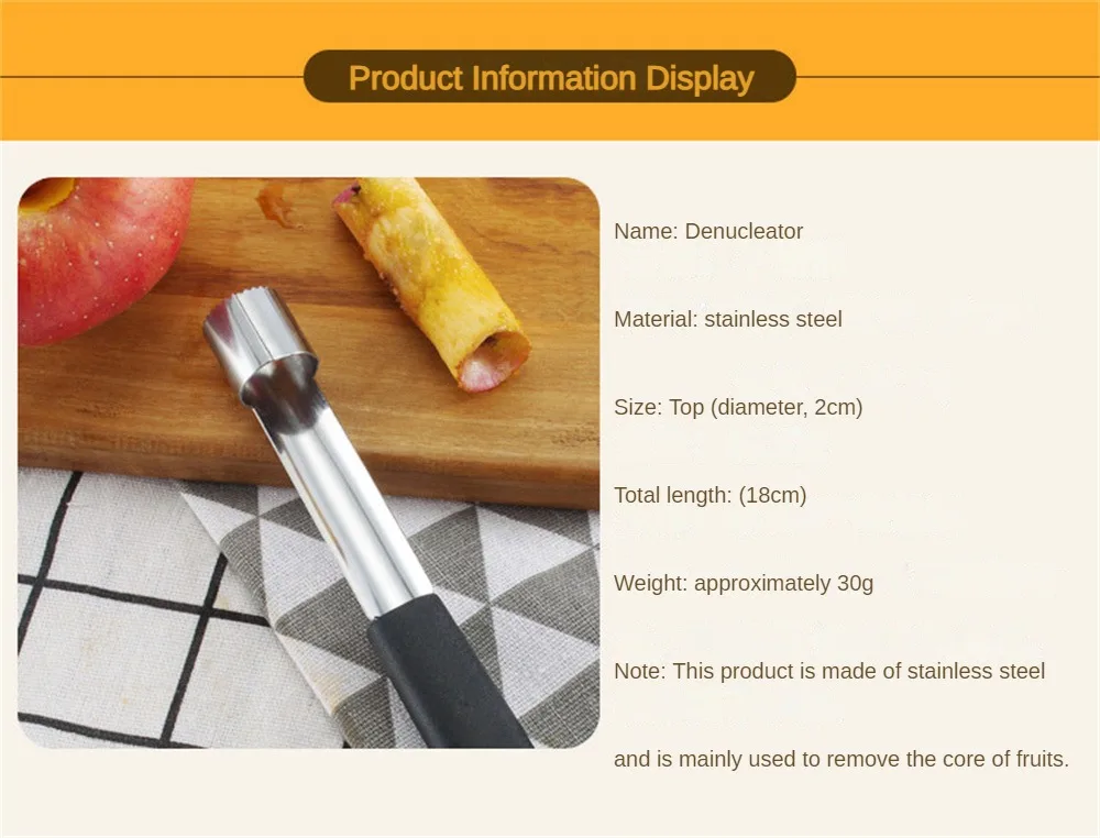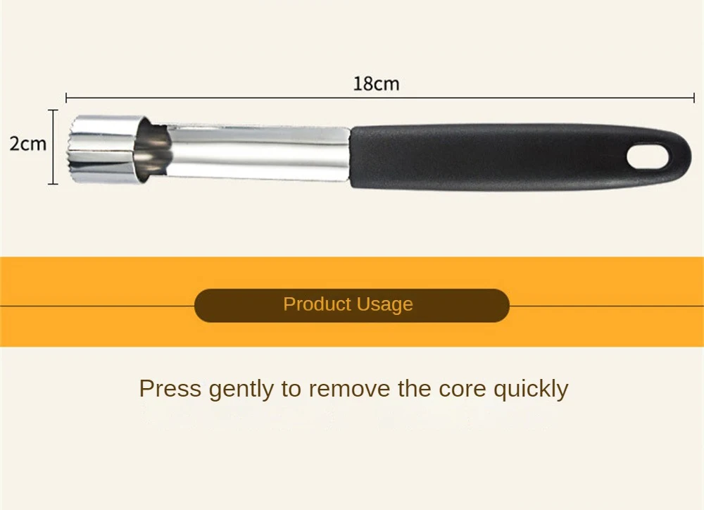 Note: This product is made of stainless steel and is mainly used to remove the core of fruits. The operation is simple and fast