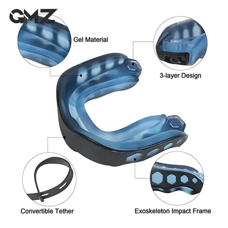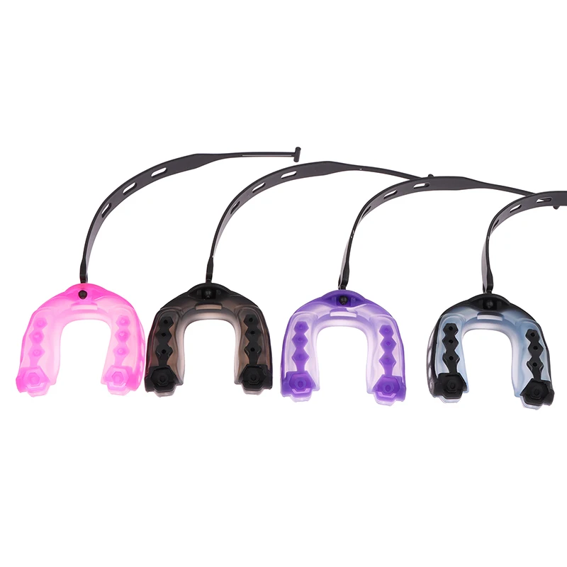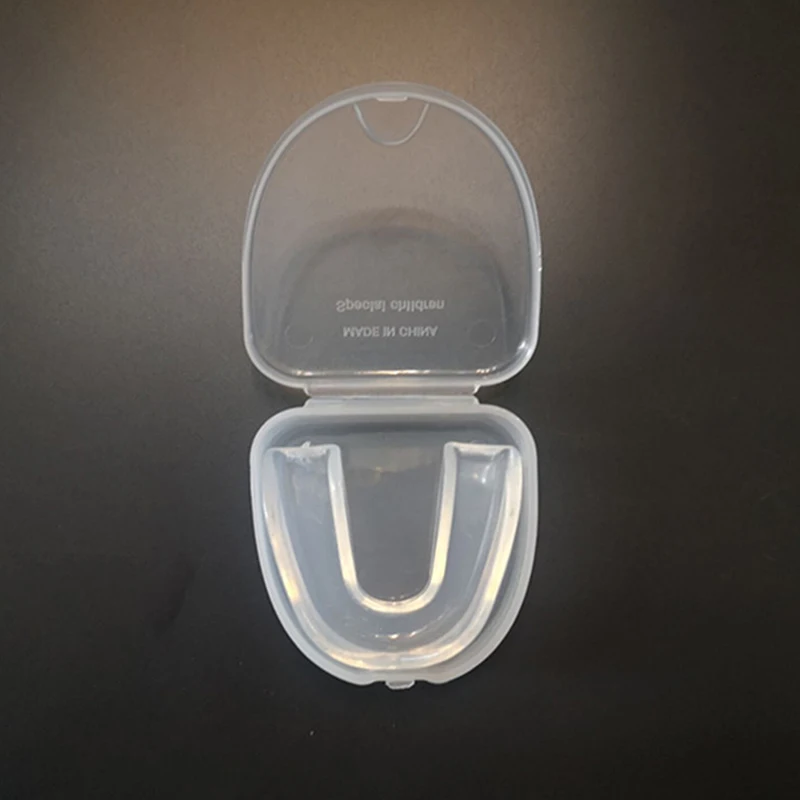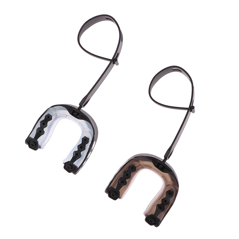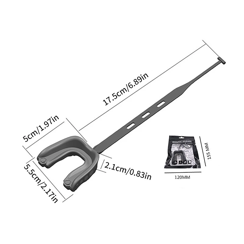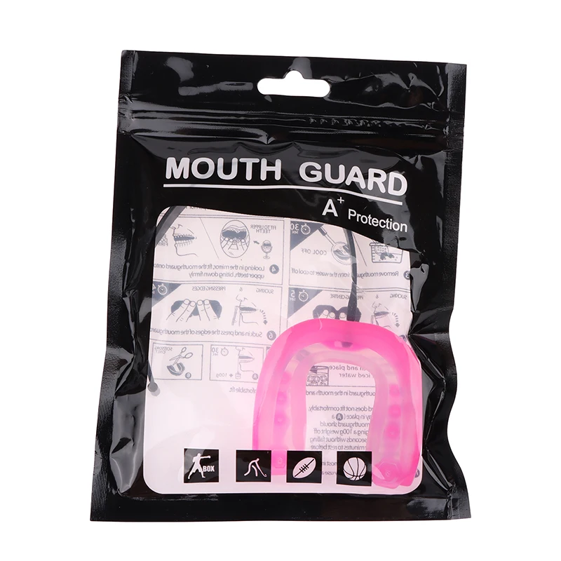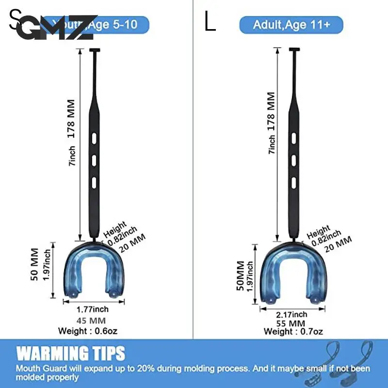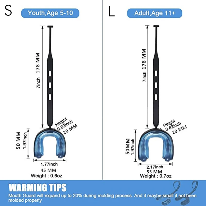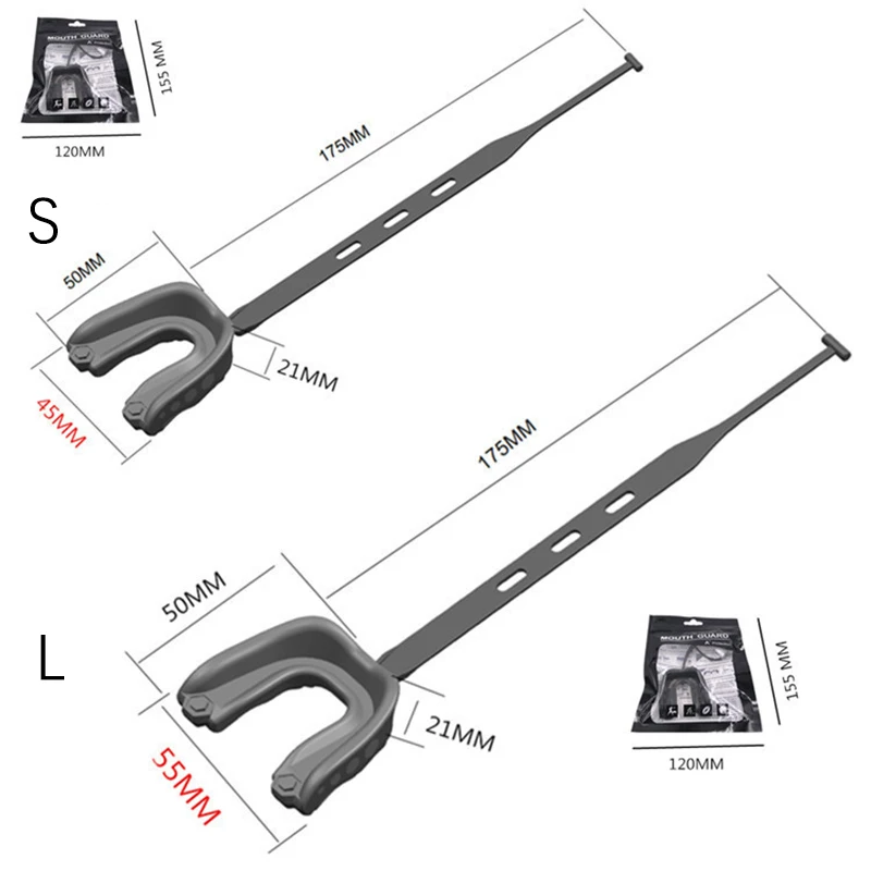 Groove fit the surface of the teeth, convenient to keep breathing smoothly and does not affect the protective effect of teeth during strenuous exercise.The mouth guard can reach to rear molars, to provide complete protection.ideal for paratrooper, judo, grapple, free combat, ice hockey, rugby football, BJJ, baseball and Muay Thai etc.Mouth Guard Size: 5.5×4.7×1.6cmMaterial: EVAColor: TransparentPackage Included:1 X Mouth Guard1 X Plastic BoxNotes:1. Due to the difference between different monitors, the pictures may not reflect the actual color of the item.2. Compare the detail sizes with yours, please allow slight difference due to manual measurement.Item Name: Black Football Mouthguard Material:rubber Color: As the picture shows Size:As the picture show(1inch = 2.54cm) Quantity:1 PcsItem Name:Sport Teeth Guard Material:EVA Color:As the picture show Size:5cm/1.97in*5.5cm/2.17in Package includes: 1 x Sport Teeth Guard With Strap